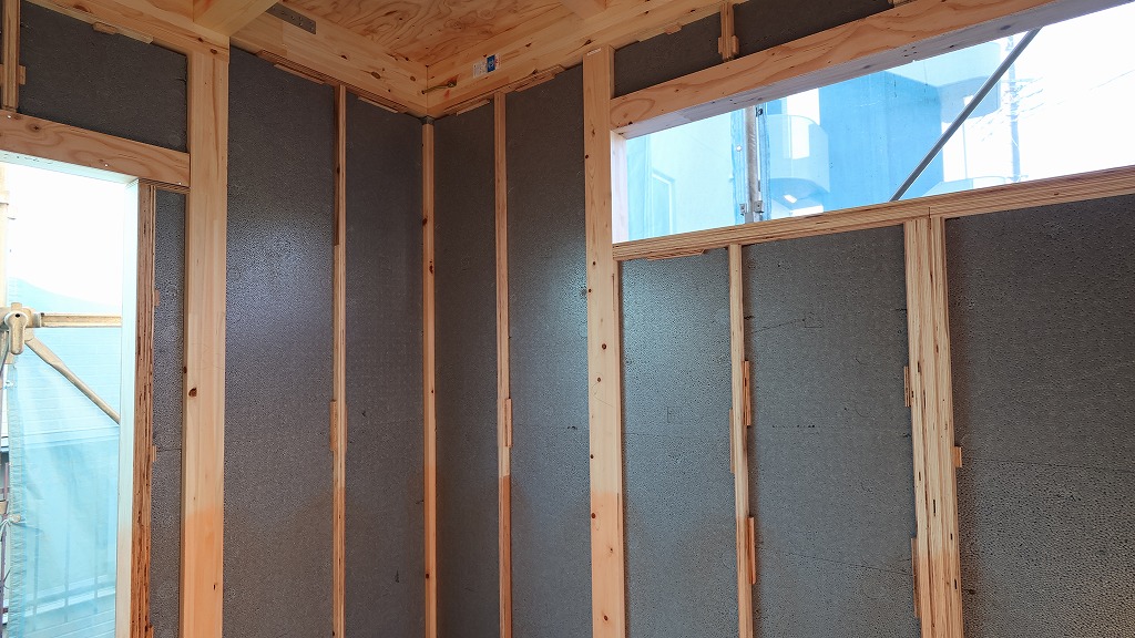 上の写真はアイディホームの建築現場ですが、断熱材がしっかりと配置されていることがわかります。建築後であっても、サーモカメラなどで確認すれば断熱性のチェックは可能です。