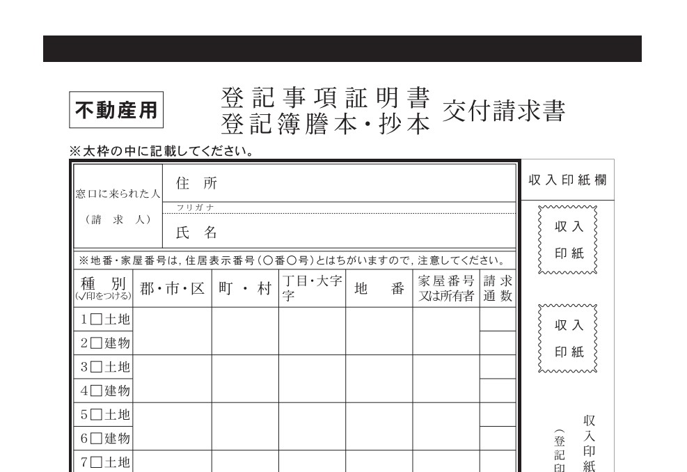 不動産の登記事項証明書を請求する場合は、黒色の用紙を使用します。